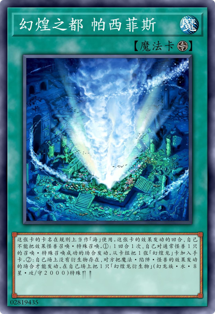 其属于幻煌字段的卡片,所以在增幅水属性怪兽的同时,也有专门针对“幻煌龙”类怪兽的效果存在。